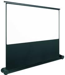 Ecran 2x1,5 mètre ORAY, facile à transporter grâce à ses roulettes et montage très rapide en 10 secondes.